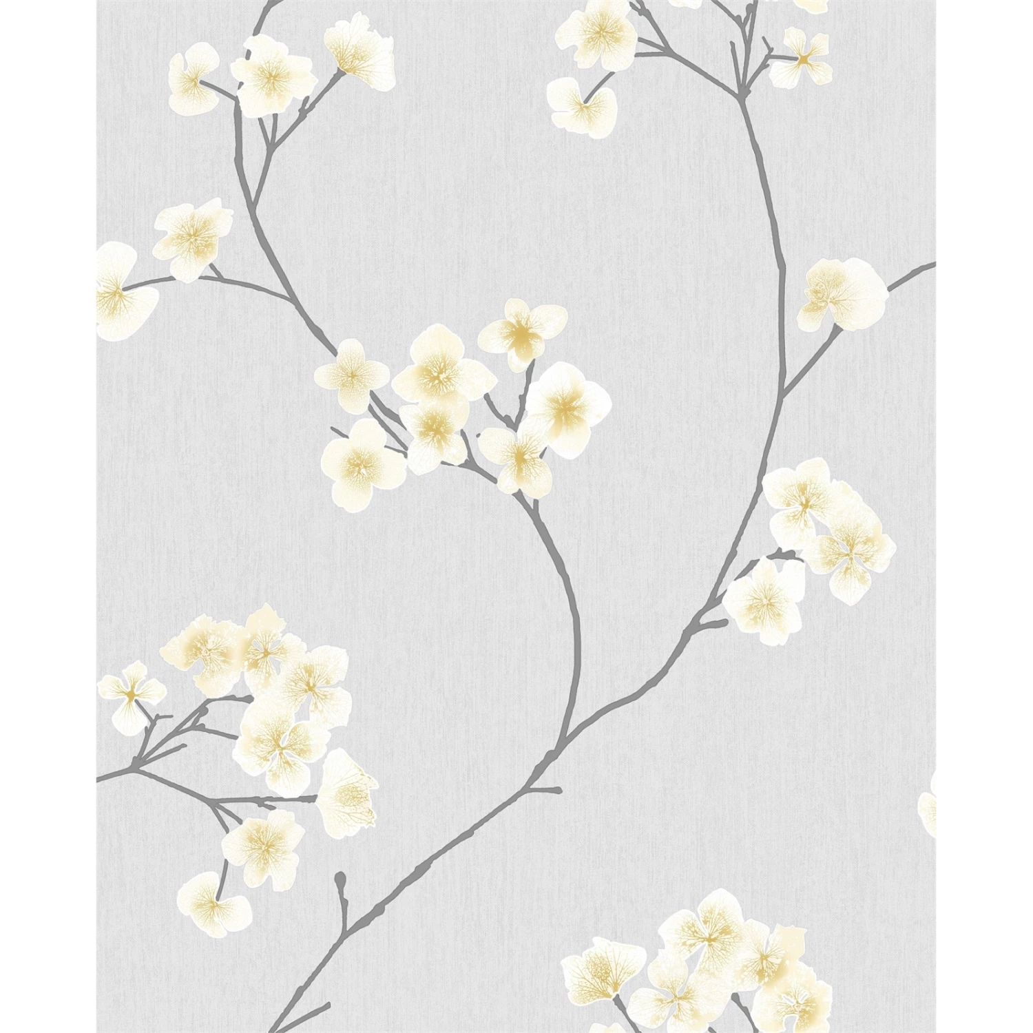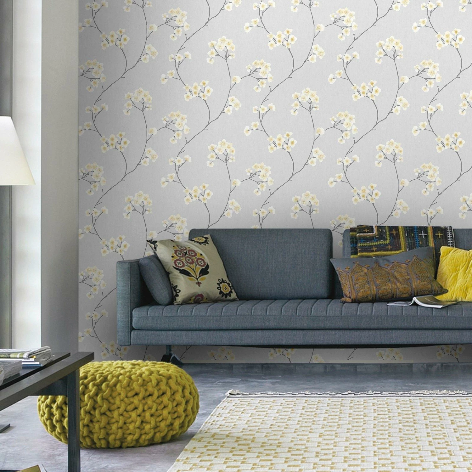 The oriental inspired Radiance Grey and Ochre Wallpaper combines calming lavender and playful blossom trials. This is highlighted on a subtle grey backdrop, bringing to life a flurry of colour.