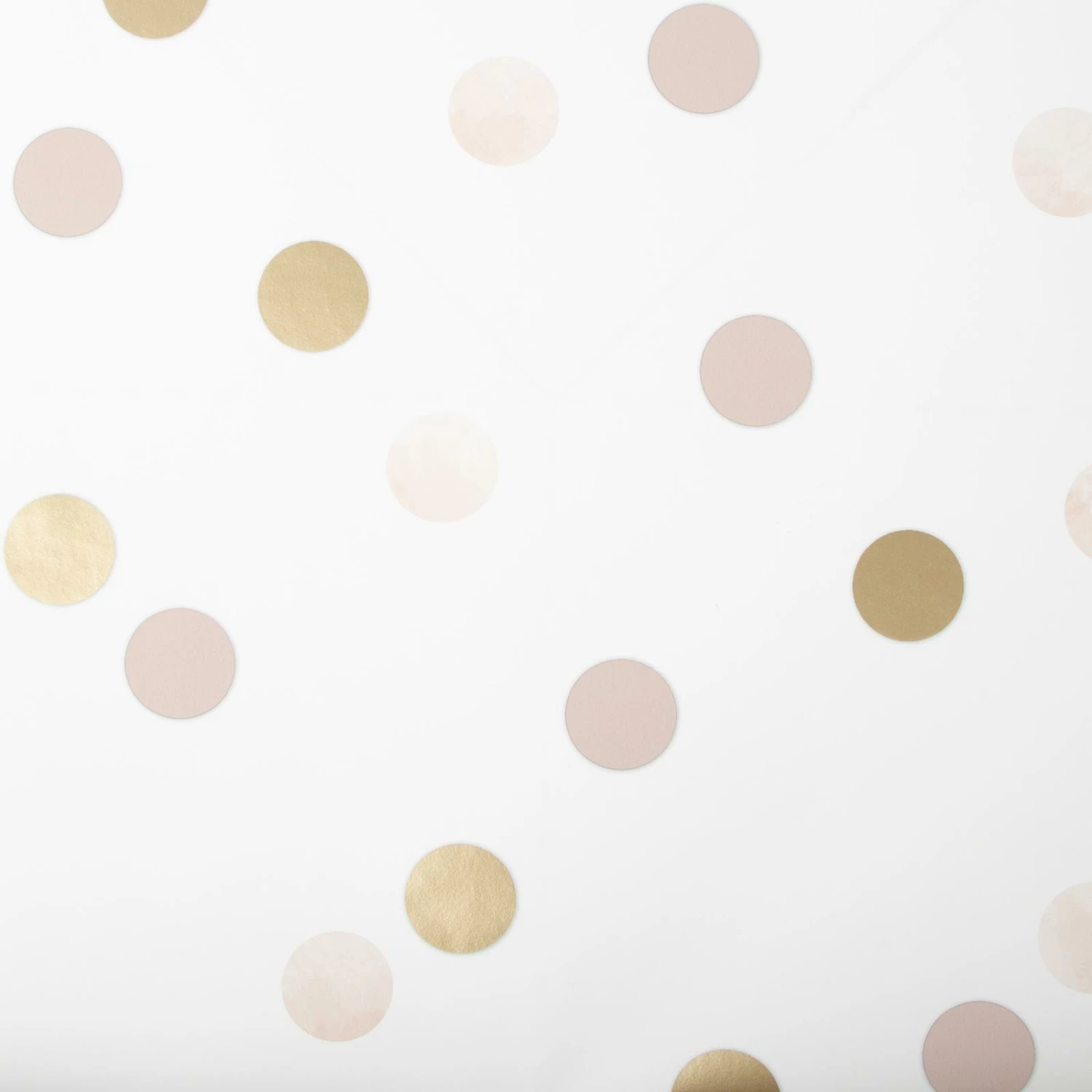 This watercolour Polka Dots wallpaper is ideal for bedrooms, nurseries and playrooms. The simple yet effective design features an all-over pattern of metallic and hand painted watercolour polka dots in soft complimentary shades on a white background. Easy to apply just paste the wall to hang.