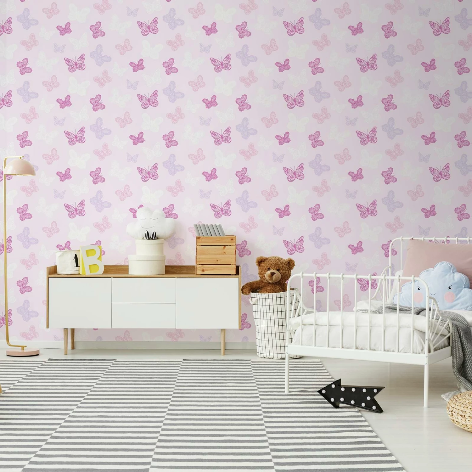 Our butterfly wallpaper is pretty in pink and perfect for personalising any children’s room. With a beautiful pink, purple, and white butterfly design, this wallpaper is easy to apply and brings a touch of playful style to a child’s bedroom or playroom. Use it to create a feature wall or style it across the entire room for a wow-factor design! However you style it, our pink butterfly wallpaper will add irresistible fun and brighten up any space.